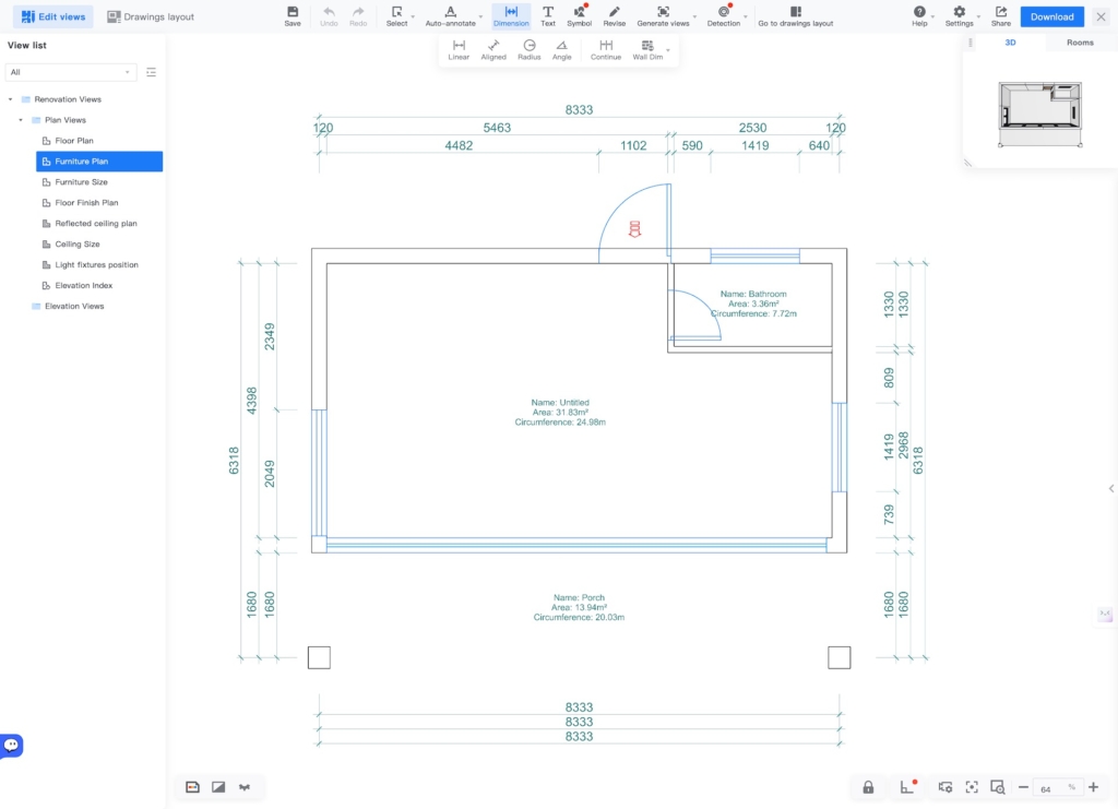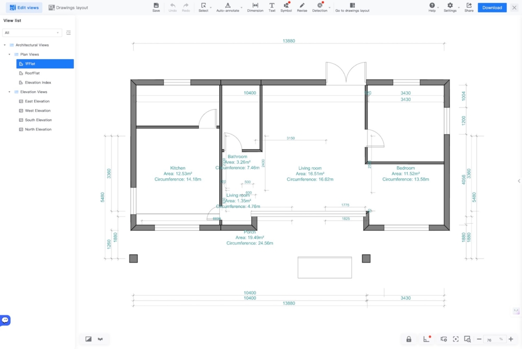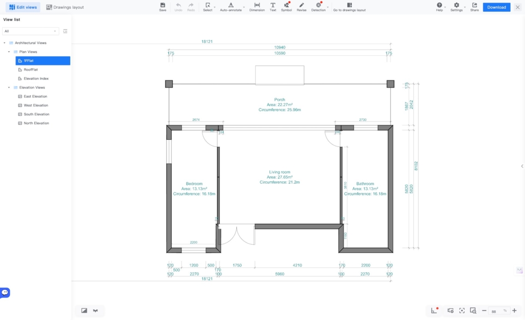 This single-story residence features two bedrooms (11.52 m² and 12.53 m²), each with its own bath, plus a central 16.51 m² living room opening to a spacious 19.49 m² porch. The linear footprint minimizes site disturbance while strategic overhangs and cross-ventilation keep interiors cool. Perfect for discerning buyers seeking turnkey two-bath convenience.