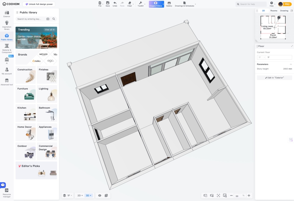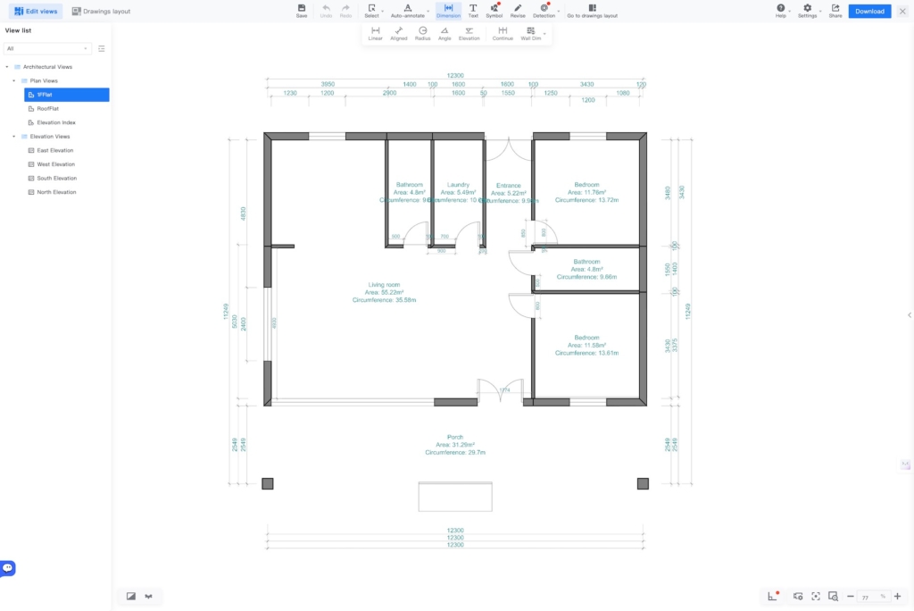 This upscale family villa spans 133 m² with an open 55.22 m² great room flowing to a generous 31.29 m² covered porch. Two secluded bedrooms, dual bathrooms, and a utility room provide all the amenities growing families need. High-performance insulation and wide eaves create an energy-efficient envelope, striking the perfect balance between spacious living and streamlined construction.